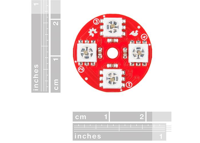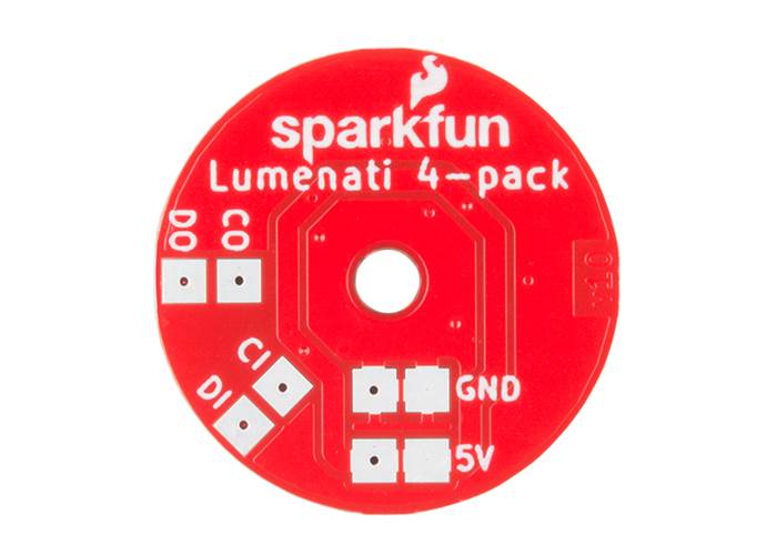 Designed to give your projects an edge in their lighting capacity, the SparkFun Lumenati 4-pack is a coin-sized board equipped with four APA102C LEDs surrounding the outer edge.