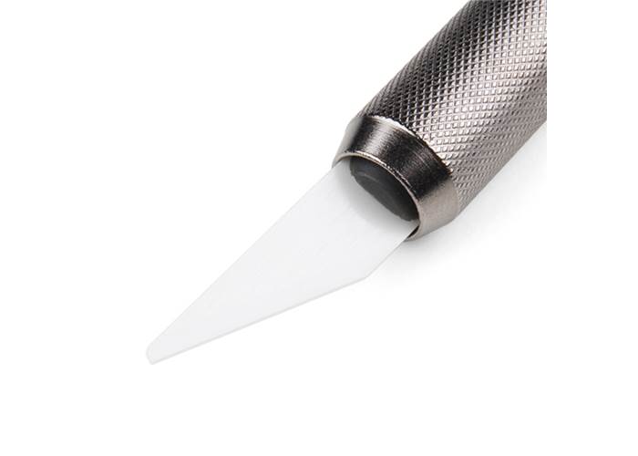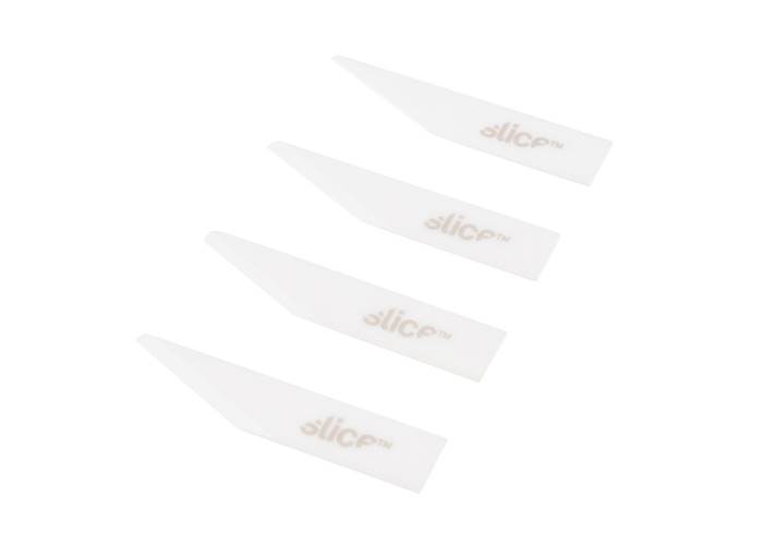 Metal is out; ceramic is in! This is a four-pack of Slice blades made of 100 percent hand-sharpened zirconium oxide. Each blade features a straight edge and a rounded tip to guard against puncture accidents. As with all Slice ceramic safety blades, these blades are non-magnetic, chemically inert, non-sparking and rust-proof, making them perfect not only for craft and hobby projects but also for electronics.