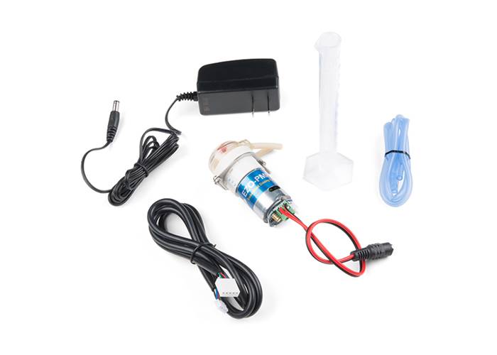 The pump can simply connect to any TTL UART (such as an FTDI USB bridge or an Arduino RX/TX line) or I2C device. It is equipped with an easy-to-read RGB LED with multiple colour codes to help define any situation the EZO-PMP is in. This kit includes everything you need to start using the EZO-PMP. They’ve even thrown in a tiny graduated cylinder for calibration. Each EXO-PMP runs at 3.3V–-5V for logic and 12V-–24V for the motor and has plenty of example code for multiple formats to get you up and running in no time!