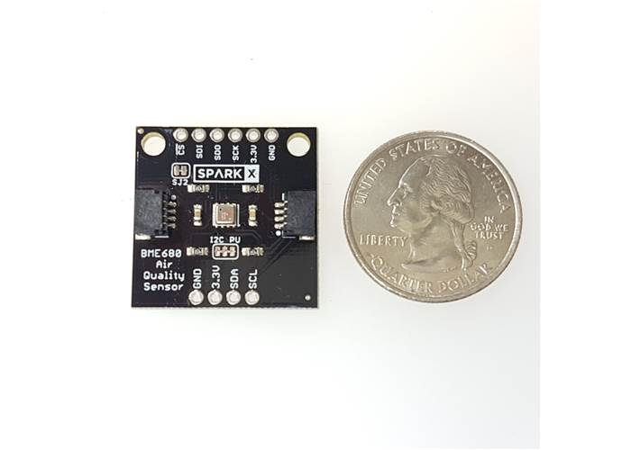 While the BME680 is a very small IC, getting actual indoor air quality (IAQ) out of the BME680 is difficult. If you need a more direct sensor we recommend the SparkFun Environmental Sensor Combo which uses the CCS811 along side the BME280. Both sensors have robust libraries and a direct calculation of tVOCs and equivalent CO2.