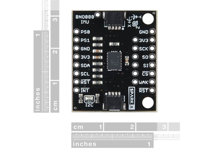 First, let us apologize for the product name; it’s hard to describe everything this sensor can do. The VR IMU uses the impressive BNO080 IMU. This IC has a combination triple axis accelerometer/gyro/magnetometer packaged with an ARM Cortex M0+ running powerful algorithms. The BNO080 Inertial Measurement Unit (IMU) produces accurate rotation vector headings, excellently suited for VR and other heading applications with a static rotation error of 2 degrees or less. It’s what we’ve been waiting for: all the sensor data is combined and drift corrected into meaningful, accurate IMU information.