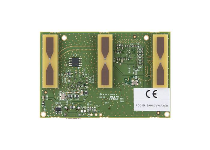 The Walabot Starter is a small, programmable sensor tool that looks into objects using radio frequency technology sense the environment, bringing highly sophisticated sensing capabilities to your fingertips. This Walabot Starter version uses a three-antenna array to illuminate the area in front of it and sense the returning signals. The signals are produced and recorded by a VYYR2401 A3 System-on-Chip integrated circuit. They are then communicated to a host device (like your phone or computer) using a USB interface, which is implemented using a Cypress controller.