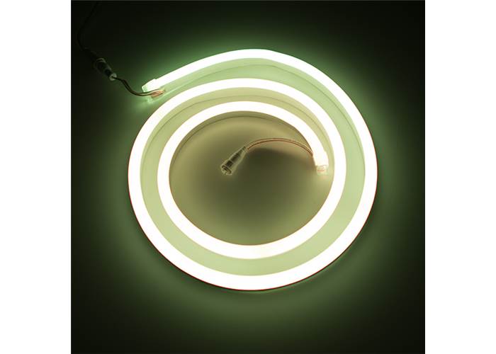 This Neon Flex Rope is a 2m long (~6.5 feet), nonaddressable LED strip that simulates the neon effects you see in storefronts at night. Each rope is packed with sixty 5050 RGB LEDs (30 LEDs/m). Though this flexible LED rope does not actually utilise any neon petrol, the waterproof (IP65) silicon housing provides a diffused glow similar to those “Open” signs.