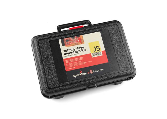 The Johnny-Five Inventor’s Kit (J5IK) is your go-to source for developing projects using the Tessel 2 and the Johnny-Five programming framework. With the J5IK you will be able to build JavaScript-powered hardware by marrying common software language with powerful hardware.