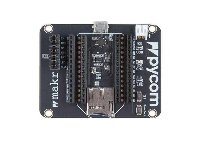 Each Expansion Board can be powered via micro USB or LiPo JST for 100mA or 450mA batteries and features a custom PIC USB to serial converter with an automatic bootloader mode to program your Pycom development board. There is also an on-board microSD card slot to increase the storage capacity of your desired board.