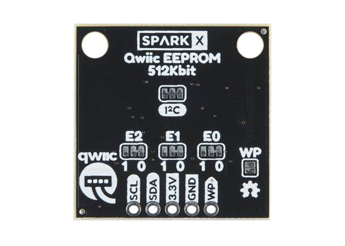 Add some serious data storage to your latest project with this 512Kbit (64KB) EEPROM. Some flash based microcontrollers (like the SAMD21) do not have EEPROM. Use the Qwiic EEPROM for storing things like GPS waypoints and other user settings that need to be maintained between sketch uploads. Qwiic EEPROM has 3 address jumpers, allowing for up to 8 EEPROMs on one bus.