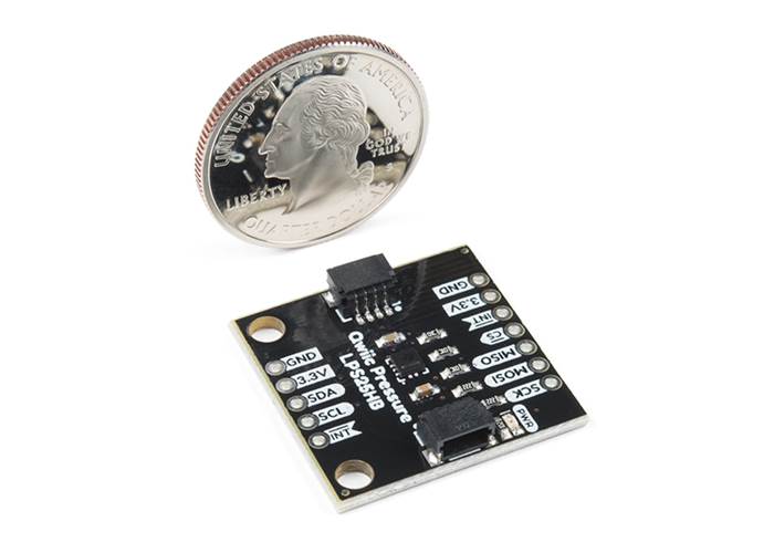 The LPS25HB is the newest version of the LPS25H by STMicroelectronics featuring the widest range of sensing pressures (26 kPa to 126 kPa) and very high precision (as low as 1 Pa RMS, which equates to approximately 8 centimeters of air at sea level). Other features such as the 25 Hz update rate and durability to withstand nearly 2.5 MPa over-pressure make this a great choice for absolute pressure sensor. Additionally the LPS25HB comes in a stylish plastic IC package, as opposed to the standard metal casing seen on most other pressure sensors.