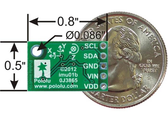 A minimum of four connections are necessary to use the MinIMU-9 v2: VIN, GND, SCL, and SDA. VIN should be connected to a 2.5-5.5 V source, GND to 0 volts, and SCL and SDA should be connected to an I²C bus operating at the same logic level as VIN. (Alternatively, if you are using the board with a 3.3 V system, you can leave VIN disconnected and bypass the built-in regulator by connecting 3.3 V directly to VDD.)