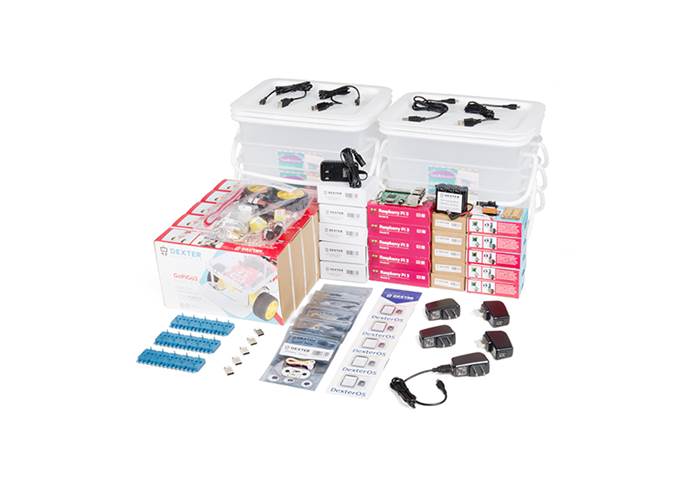 The GoPiGo Classroom Kit includes everything you need to get up to five students started from scratch including GoPiGo3 Base Kits, Raspberry Pis, GoPiGo servo packages, distance sensors, microSD cards (with pre-loaded DexterOS software), 8GB USB drives, power supplies, storage bins, rechargeable batteries, and more!