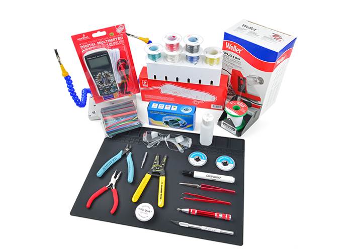 This latest edition of our deluxe tool kit adds several items, most notably the heaterizer, a third-hand kit, more hook-up wires, and our upgraded wire strippers and flush cutters!