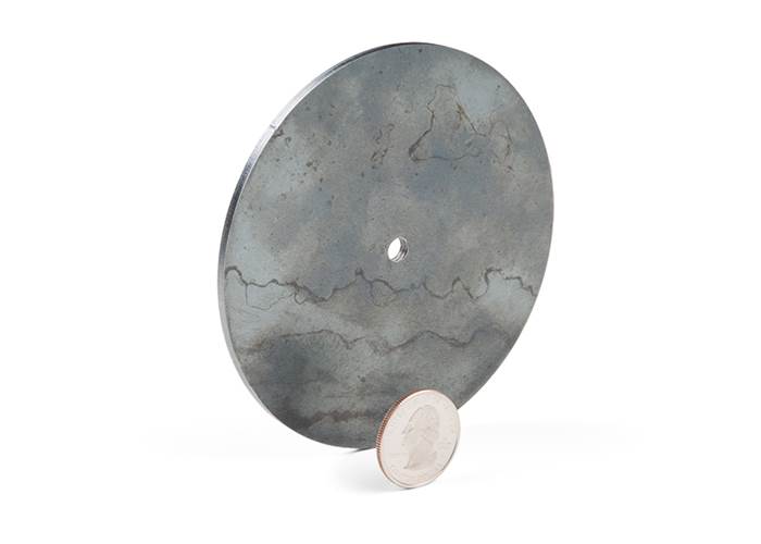 The ⅛” thick steel plate has been tapped to fit onto the standard ¼-20 UNC camera mounting screw. While it is not the cleanest piece of steel and weighs in at a hefty 0.4211 lbs, it does provide a solid base to allow a GPS Magnetic Mount Antenna to sit flat on the ground plane while mounted to a tripod.