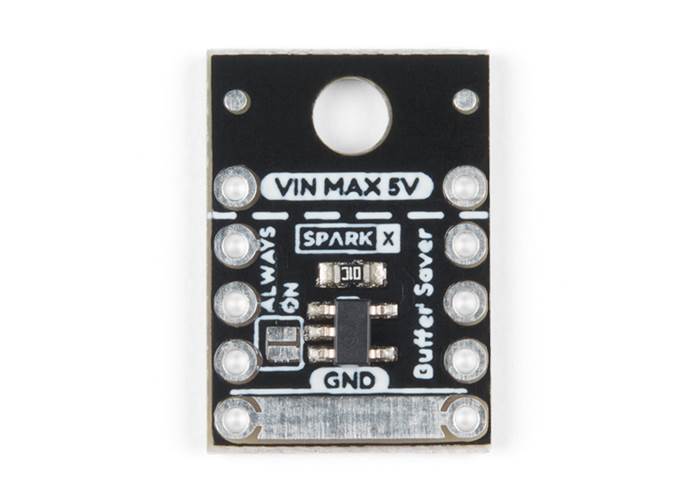 The BufferSaver is an extremely compact board designed to sit in series with the power and data lines going to an LED strip or any other one-way SPI interface. A tri-state buffer is used to connect the MOSI and MISO lines when activated so that you can circumvent the Arduino library implementation of SPI.transfer() that would otherwise overwrite your data.