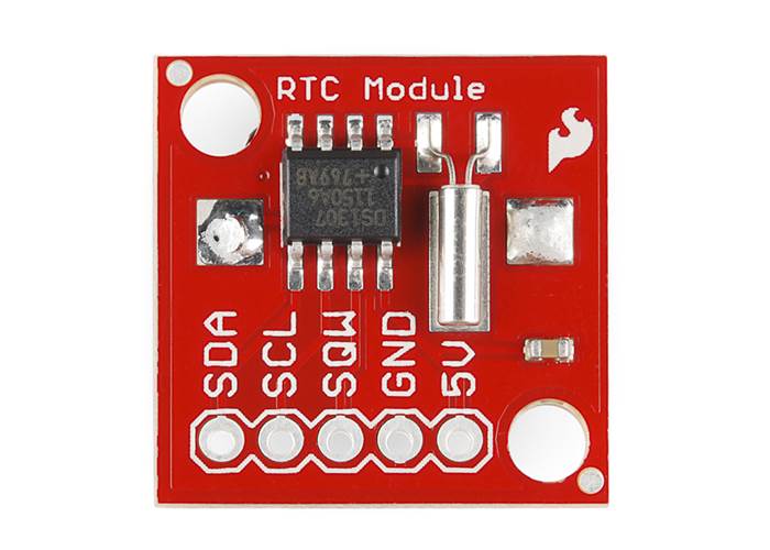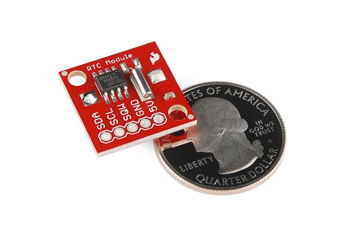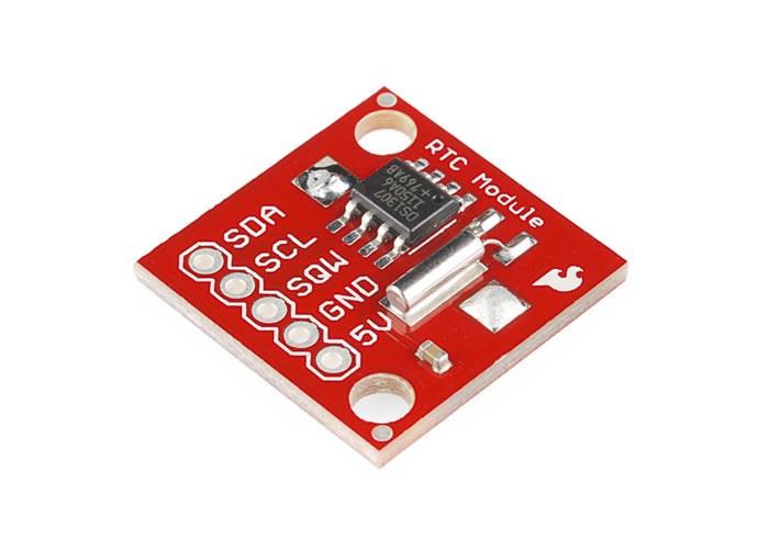 This a custom designed module for the DS1307 Real Time Clock. The module comes fully assembled and pre-programmed with the current time (ok, so it's SparkFun's time - MST - Colarado USA). The included Lithium coin cell battery (CR1225 41mAh) will run the module for a minimum of 9 years (17 years typical) without external 5V power. The DS1307 is accessed via the I2C protocol. SparkFun have written a test-bed to program the modules. This test-bed code should give you some insight on how to interface the module to any microcontroller using our example software I2C and BCD routines.