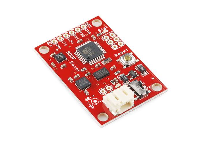 The 9DOF Razor IMU incorporates three sensors - an ITG-3200 (triple-axis gyro), ADXL345 (triple-axis accelerometer), and HMC5883L (triple-axis magnetometer) - to give you nine degrees of inertial measurement. The outputs of all sensors are processed by an on-board ATmega328 and output over a serial interface. This enables the 9DOF Razor to be used as a very powerful control mechanism for UAVs, autonomous vehicles and image stabilization systems.