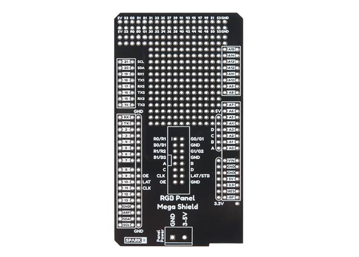RGB panels are excellent fun but wiring them up can be a pain. This simple shield for Arduino connects the necessary 14 digital pins to drive our 32x32 RGB panel and our larger 32x64 RGB panel .
