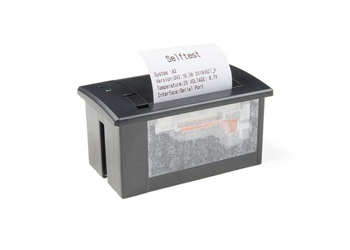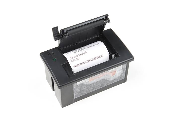 The thermal printer takes 2.25" (57mm) wide thermal paper with a max roll diameter of 1.5" (39mm). Thermal paper is inexpensive and commonly found in most office supply stores in 85ft lengths. You may have to remove some paper from these rolls in order for it to fit into the printer. But, you can always use the excess paper in the printer, since you don’t need to have a ‘core’ in the paper for it to work.