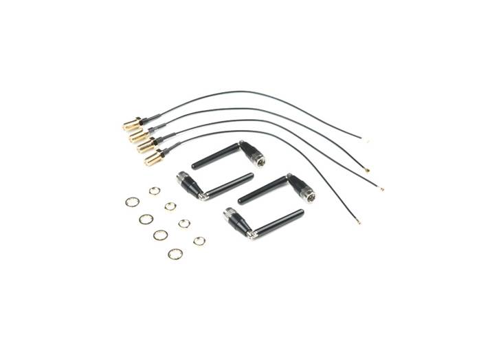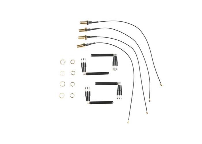 Included in each pack are four antennae with SMA connectors, four U.FL to SMA cables, and all the washers and nuts you need to connect them. Additionally, each antenna in this pack can bend to -90, -45, 0, 45, and 90 degrees.