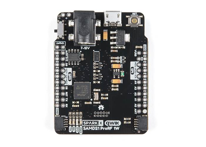In addition to more transmission power the SparkX SAMD21 ProRF 1W gets more computational power courtesy of the SAMD21 microcontroller running at 48 MHz. We used the additional GPIO pins to permanently enable LoRaWAN signals. This means more pins for you to connect to sensors and actuators, even when connecting to a LoRaWAN network like The Things Network.