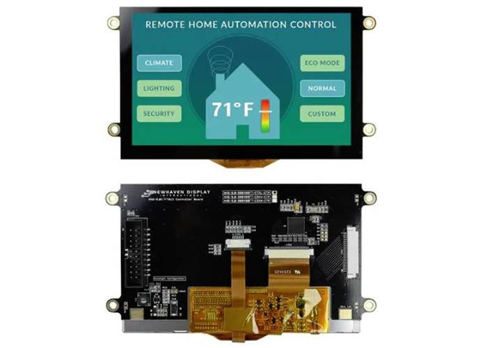 Newhaven Display’s 5.0" EVE2 TFT module powered by the FTDI/Bridgetek embedded graphic engine with capacitive touch integration.