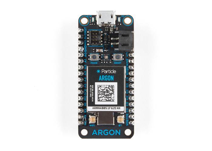 The Particle Argon is an IoT development kit that allows you to connect your mesh network to Wi-Fi. With the Nordic nRF52840 SoC and an ESP32 you have all the power of an ARM Cortex M4 with OpenThread mesh networking, Wi-Fi (b/g/n), NFC, plenty of GPIOs, LiPo charging and more.