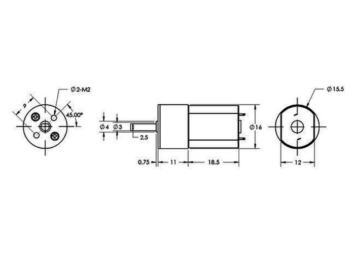 This brushed DC gearmotor has a long (0.365" or 9.27 mm), 3 mm-diameter D-shaped metal output shaft that matches our assortment of wheels . Alternatively, our 3mm universal mounting hub can be used to mount custom wheels and mechanisms to the gearmotor’s output shaft.