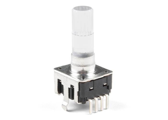 This encoder is especially cool because it has a red/green LED built in, as well as a push-button. This version has an updated material that is heat resistant and slightly changed dimensions, but should still work well with our rotary encoder breakout board and the clear knob.