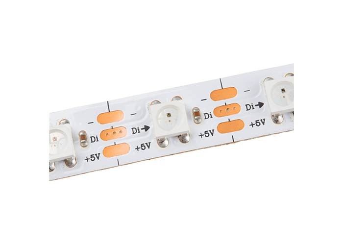 These are bare addressable 1 meter long 5V RGB LED strips that come packed with 60 APA104s per meter. As these are bare LED strips that have no protective coating, your project won't be water proof but there is access to each APA104 LED and each strip length can be easily modified.