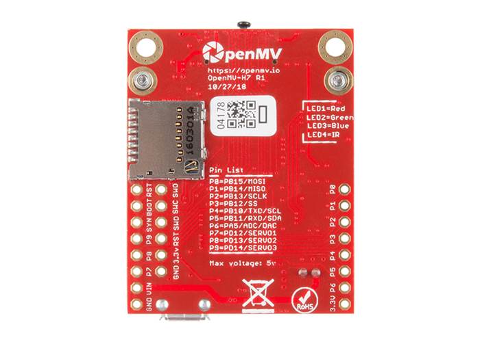 The OpenMV H7 Camera is a small, low power, microcontroller board which allows you to easily implement applications using machine vision in the real-world. You program the OpenMV Cam in high level Python scripts (courtesy of the MicroPython Operating System) instead of C/C++. This makes it easier to deal with the complex outputs of machine vision algorithms and working with high level data structures. But, you still have total control over your OpenMV Cam and its I/O pins in Python. You can easily trigger taking pictures and video on external events or execute machine vision algorithms to figure out how to control your I/O pins.