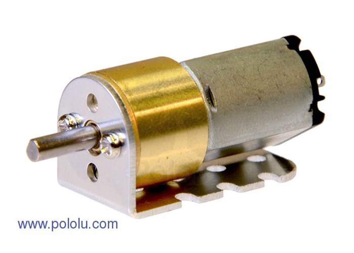 These brackets can also be used to mount our micro metal gearmotors, as shown below, although this requires a pair of M1.6 screws for each bracket (not included).