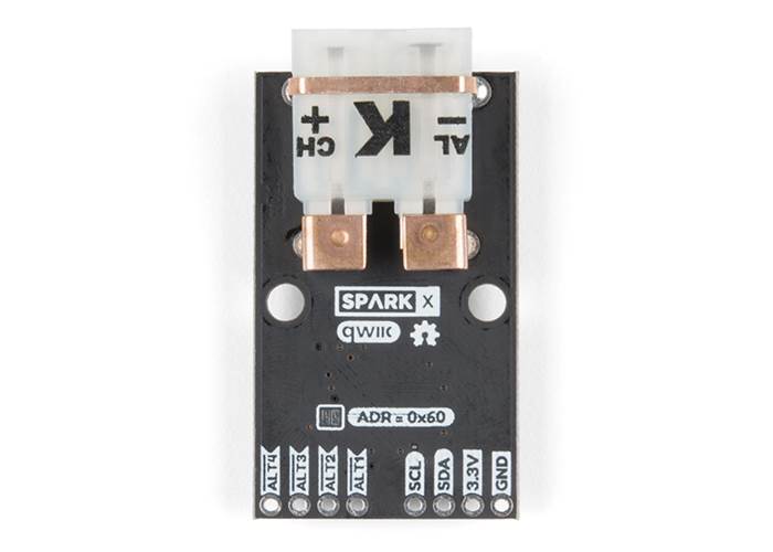 The MCP9600 is a high accuracy thermocouple amplifier equipped with an I2C interface, accessed over our Qwiic system. Inside the chip are two temperature sensors, one for the thermocouple itself (the hot junction) and one for the chip itself (the cold junction). As a result, the MCP9600 can read both the ambient temperature and the temperature of whatever you're trying to measure! The MCP9600 can do both with a resolution of 0.0625°C, and an accuracy of ±1.5°C (worst-case). This board comes ready to accept a K-type thermocouple, which gives a temperature range of -200°C to 1350°C! This makes it perfect for a variety of applications, from measuring the temperature of your Crock-Pot to making sure your backyard induction furnace is up to temperature.