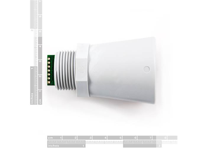 The WR uses a robust PVC housing, is designed to meet IP67 water intrusion, and matches standard electrical 3/4" PVC pipe fittings. The sensor provides very accurate readings from 0 to 765cm (0 to 25.1ft) with 1cm resolution. This sensor can be powered with anywhere between 3.3 and 5VDC.