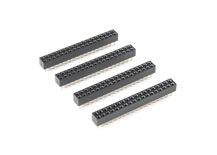 This is a set of four 2x18 female headers with 0.1"-spaced pins for the Alchitry Br Prototype Element Boards. These line up exactly with all the broken out holes in the Br prototyping area to make it easy to jump wires to a breadboard or other temporary connections.
