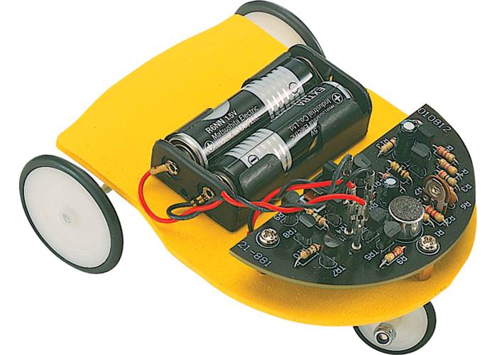 Elenco Sound Reversing Car (21-881) is a great introductory kit with a little soldering. Using a sensor to detect sound the car will move forward when it hears a noise like a clap and reverse when it touches an obstacle. Ages 14+