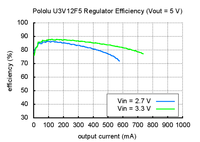 Pololu step-up voltage regulator U3V12Fx - Efficiency