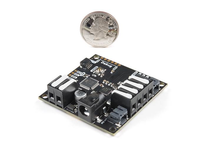 Ever found controlling stepper motors confusing? There are a huge variety of wires to get connected right: power, motor coils, and control lines. And the tiny screwdriver to adjust the terminals is never where it should be. Qwiic Step simplifies the tangle. Just connect your motor to Qwiic Step using the ergonomic latch terminals, apply 8 - 35V to the barrel jack, and plug in Qwiic Step to your favourite RedBoard with a Qwiic cable.