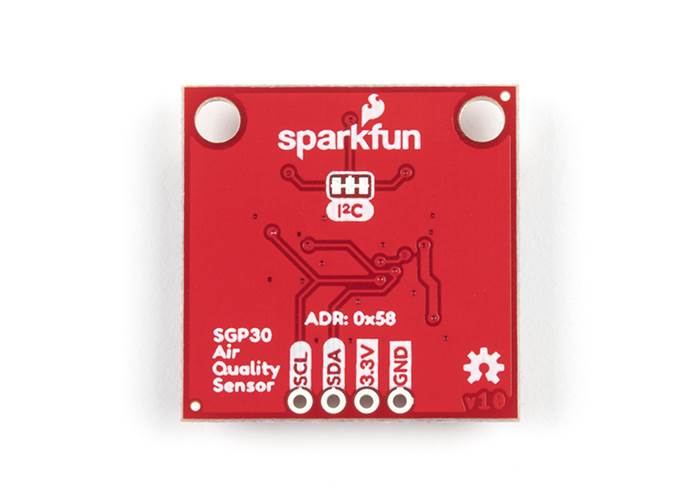 The SparkFun SGP30 Air Quality Sensor provides information on the quality of the air in your room or house by monitoring the volatile organic compounds around the sensor. The SGP30 Air Quality Sensor can return valid indoor air quality (IAQ) readings within 15 seconds of powering up! By comparison, typical air quality (IAQ) sensors are great for measuring CO2 and volatile organic compounds (VOCs) but some of them require a burn-in time of 48 hours and a 20-min start up time.