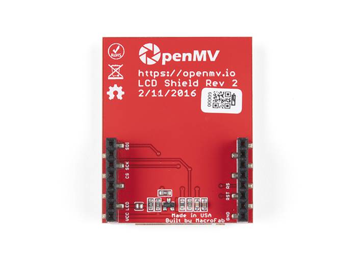 The LCD Shield gives your OpenMV Camera the ability to display what it sees on-the-go while not connected to your computer. This shield features a 1.8" 128x160 16-bpp (RGB565) TFT LCD display with a controllable backlight. Your OpenMV Cam's firmware already has built-in support for controlling the LCD Shield using the LCD module.
