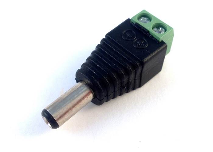 This DC barrel jack connector features a screw terminal at one end making it super easy to connect up some wires without soldering. A quick way to connect a plug pack power supply to a breadboard or other project. The DC connector is a common 2.1mm diameter.