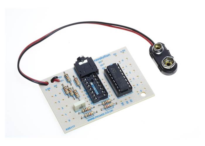 The board is supplied with all essential PCB components including IC and download sockets plus a ULN2803A Darlington driver buffer chip that enables you to connect higher power output devices (such as motors, solenoids, relays) directly to the board (current up to 500mA). Purchase PICAXE-14M2 microcontroller separately.