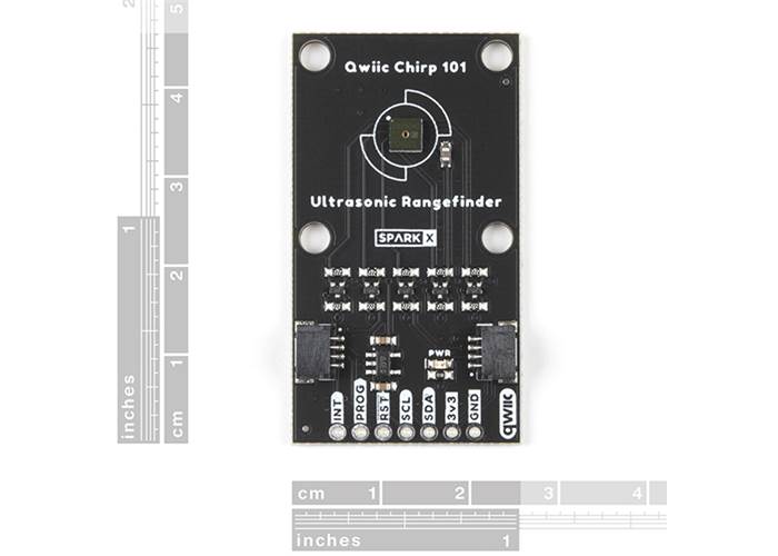 Our Qwiic breakout provides voltage regulation and level shifting for the standalone CH101-00ABR sensor. Space around the sensor is left clear for attaching the acoustic housing of your choice. TDK has provided .STEP files for several acoustic housing options that you can print with a reasonably high resolution 3D printer. There is not yet an Arduino compatible library for this sensor, however there is an API and extensive documentation available from TDK.