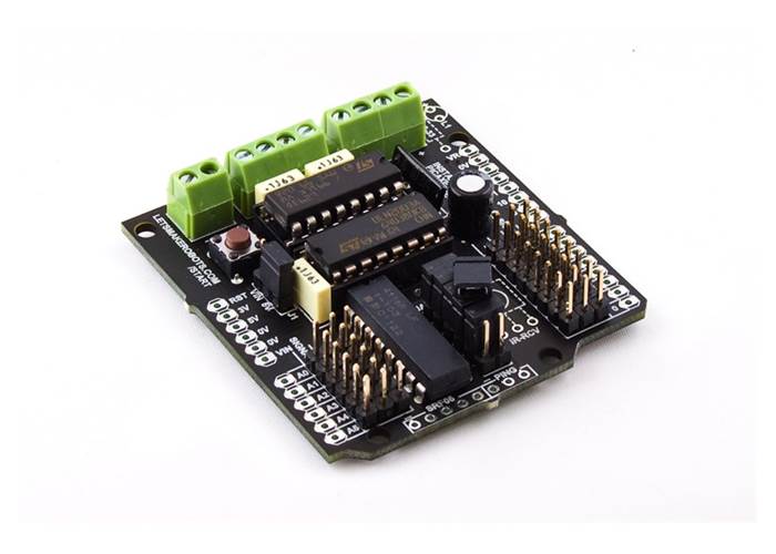 The Instant Robot Shield is designed to enable you to rapidly create a robot based upon a PICAXE-28X2 or Arduino controller. Simply push the shield onto your controller, connect your motors, sensors and servos and you can have a working robot within just a few minutes!