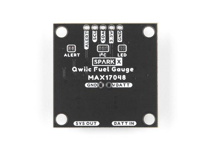 Based on the MAX17048, the Qwiic Fuel Gauge is perfect for monitoring your single-cell LiPo. While the MAX17048 provides pack voltage, it really shines with its Statement of Charge (SOC). 3.83V is ok to know, but knowing your battery is at 73% capacity is considerably better.