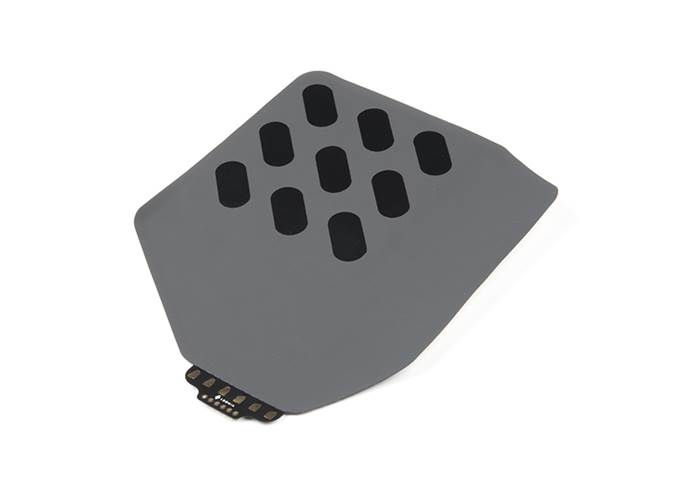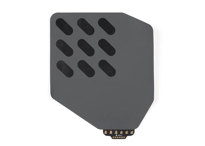 Like the Mini Pressure Sensor... but bigger! The Loomia Mega Pressure Matrix has six leads, allowing you to map which point you are at in the 3x3 matrix and get a pressure mapping over a surface. Each area has an analogue readout that varies depending on the weight of the item on the pressure sensor. Generally, sensor values will read from 500K Ohms to 100 Ohms depending on the force put onto the sensor.