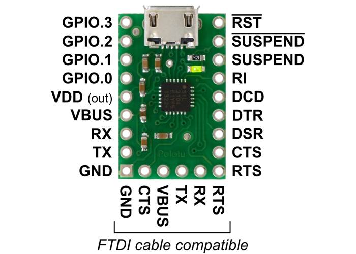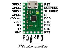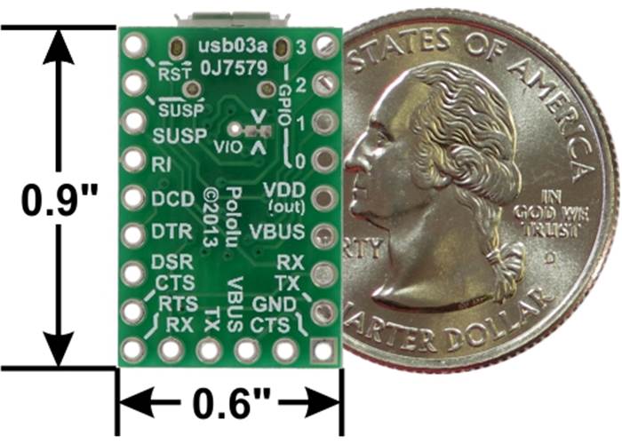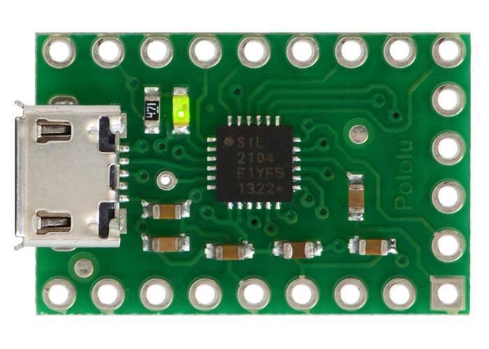 This USB-to-serial adapter is a breakout board for the Silicon Labs CP2104 USB-to-UART bridge, and it is a great solution for connecting microcontroller projects and other logic-level serial devices to a personal computer. The tiny unit measures only 0.6″ × 0.95″ including its Micro-USB connector. It offers several options for accessing the data, control, and GPIO pins on the CP2104, all of which are made available on a 0.1″ spacing.