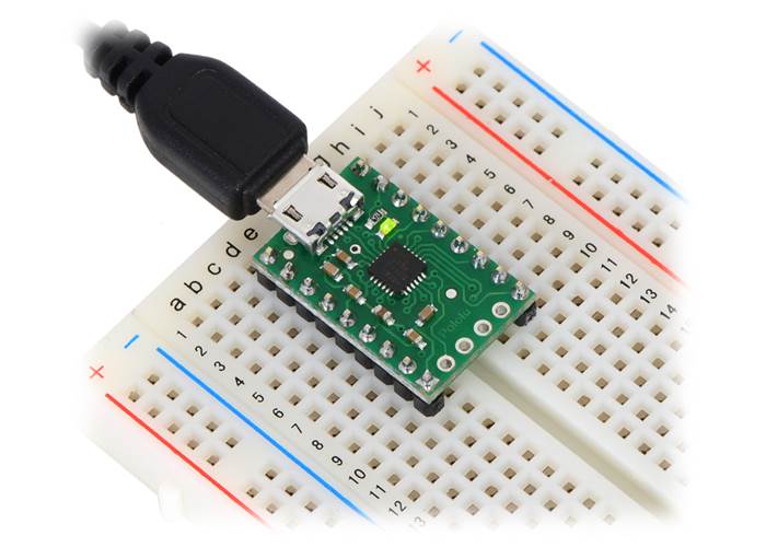 All of the adapter’s pins are available in two rows spaced 0.5″ apart along the sides of the board. This allows any pin to be accessed easily while the adapter is plugged into a solderless breadboard, as shown in the left picture below.