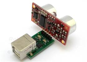 Here's the USB-I2C adaptor with a SRF08 attached.