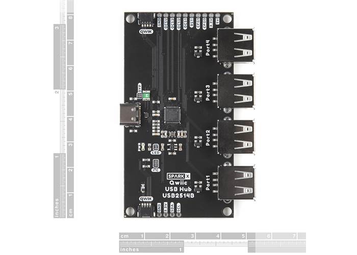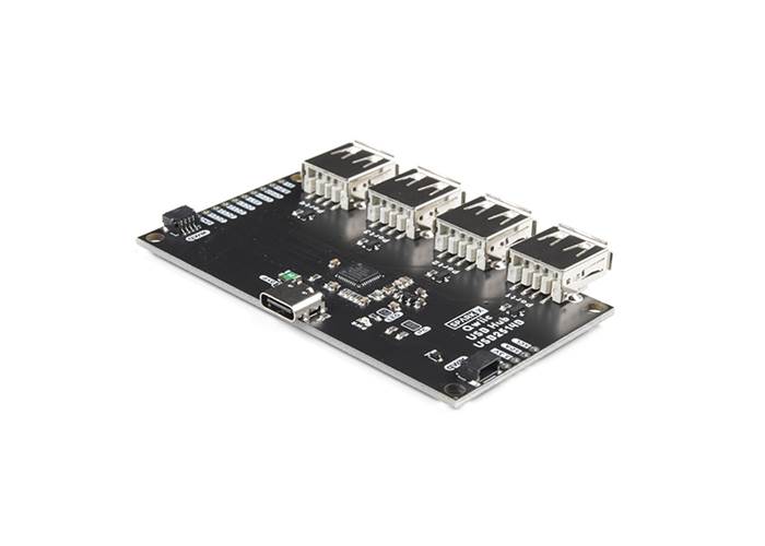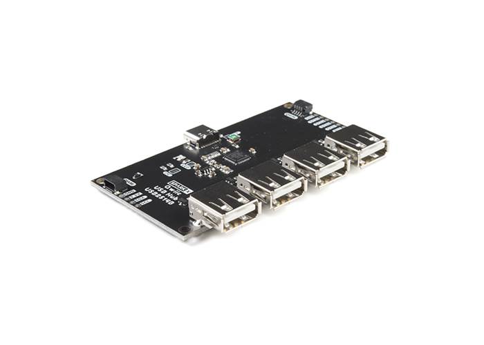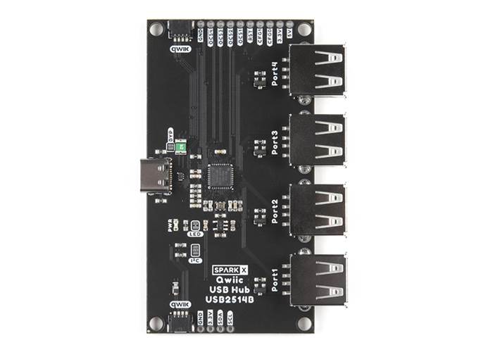 There are times when you have multiple USB devices in your prototype or device and you just want to plug in one cable. You need a built in USB hub! The Qwiic USB Hub is a simple breakout board for the USB2514B USB hub IC. What gives it extra flair is the ability to configure the device over I2C.