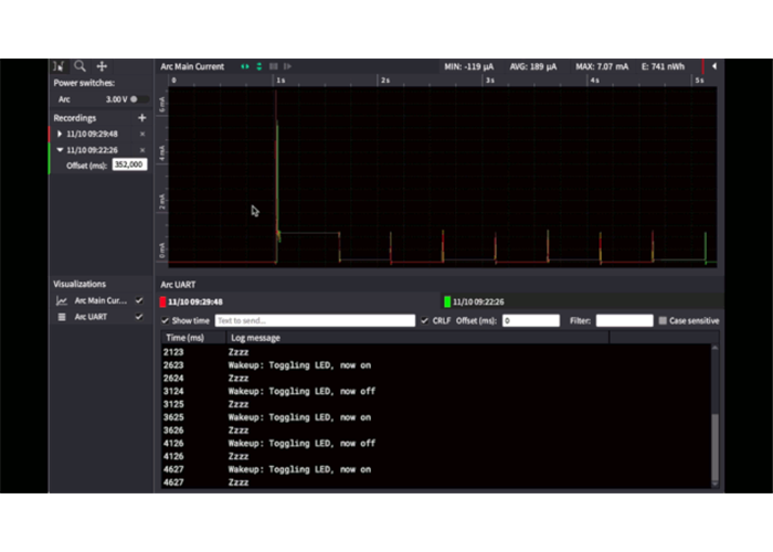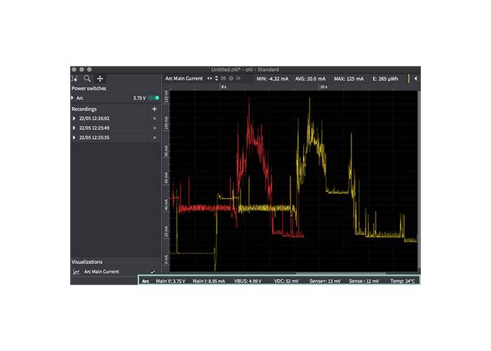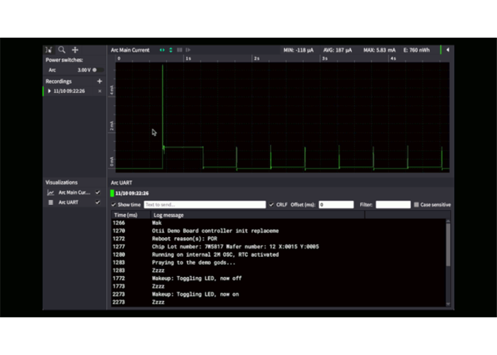 We love the Otii Arc! It is a truly versatile power supply and analyser. Coupled with powerful but easy-to-use software, it is an ideal tool to help study the power draw of your IoT project or device. It can record and display real-time currents, voltages and/or UART logs.