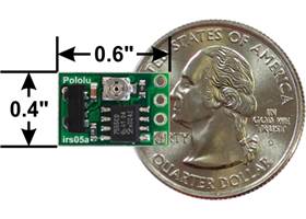 This module features a fixed-gain, 38 kHz modulated IR sensor and a corresponding IR LED with oscillator circuit to make a tiny proximity sensor. This high-brightness version draws an average of 16 mA and has a typical sensing range up to approximately 24 inches (60 cm).