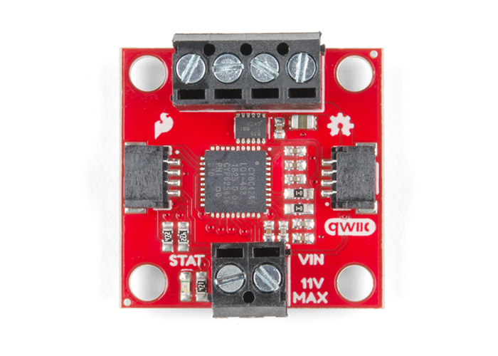 With 1.2A steady state drive per channel (1.5A peak) and 127 levels of DC drive strength, this little Qwiic board is perfect for your small DC motor driver needs. Since the Qwiic Motor Driver is a 3.3V logic device, you'll need to use a logic level converter to interface to 5V.